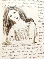 Edward Wakeling features prominently in the programme along with Julia Donaldson, author of the Gruffallo and other popular children’s books. They first appear in the British Library looking at the only surviving copy of Carroll’s original hand written ‘Alice’s Adventures Underground’ which Carroll also illustrated himself. Notable was the cover page with its Gothic writing and flowers like forget-me-nots. An interesting aside here was the fact that Carroll was influenced by the pre-Raphaelites and they compare his picture of Alice to Arthur Hughes’ 1868 painting ‘Lady With the Lilacs’ which was bought by Carroll. The similarities are obvious.
