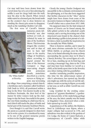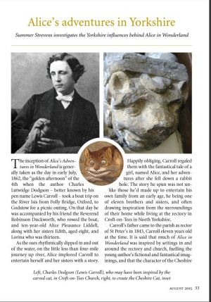 The August 2015 edition of Yorkshire’s The Dalesman had an article about Lewis Carroll and the rectory at Croft on Tees in North Yorkshire where Dodgson's father came as rector of St Peter's in 1843 with young Charles, then just 11 years old.