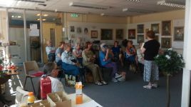 Irene Rutter, a member of the Daresbury Lewis Carroll Society and Chairman of The Lewis Carroll Centre at All Saints' Church Daresbury, came along to the exhibition on Friday July 3rd to give a talk about Lewis Carroll and the Daresbury church.