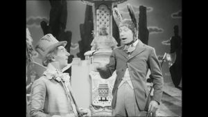 We've added an extract of the Lion and The Unicorn  dream sequence Geroge Formby's 1946 film "George in Civvy Street".  Click on the image of George as the March Hare with the Mad Hatter below to see it and got George in Civvy Street to read Stephen Martin's article.