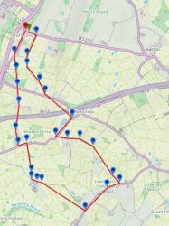 You will see various signs for this around Daresbury for this five and half mile light walk taking in the Lewis Carrol'sl birthplace, the memorial stone and other places. You can see the route on the map which was created by Jim Grindle for Walking World. Click on the image to see an enlargerd version.