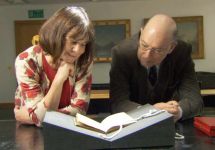 Edward Wakeling features prominently in the programme along with Julia Donaldson, author of the Gruffallo and other popular children’s books. They first appear in the British Library looking at the only surviving copy of Carroll’s original hand written ‘Alice’s Adventures Underground’ which Carroll also illustrated himself. Notable was the cover page with its Gothic writing and flowers like forget-me-nots. An interesting aside here was the fact that Carroll was influenced by the pre-Raphaelites and they compare his picture of Alice to Arthur Hughes’ 1868 painting ‘Lady With the Lilacs’ which was bought by Carroll. The similarities are obvious.