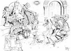 Lewis Carroll’s death in 1898 opened the way for other illustrators. However Tenniel’s illustrations were never surpassed as evidenced by a Punch cartoon of December 4th 1907 which pokes fun at the attempt of other illustrators to better Tenniel, all of them, in the end, paying homage to Tenniel’s Alice. The cartoon is entitled ‘Tenniel’s Alice Reigns Supreme’.