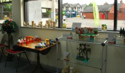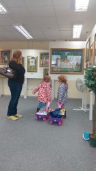 The library in West Kirby has recently had an exhibition room refurbished and June Lornie was asked to hold their first exhibition. They wanted her to help them celebrate the 150th anniversary of Alice by exhibiting her series of pictures illustrating Alice in Wonderland. Joining June were David Nickson and Franki Aston who have created Alice in Wonderland in wooden dioramas.