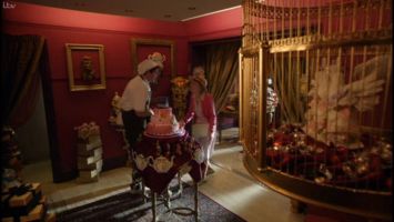 After the murder outlined above we are taken to a chocolate shop where we first see several shots which include a large Mad Hatter cake and are introduced to Dominic and his charming grandmother Belinda.